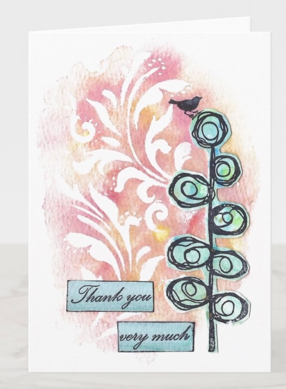 So I got my coffee (coffee first, then the things – am I right?), and got to my little art desk and got to painting and ended up with this sweet card: