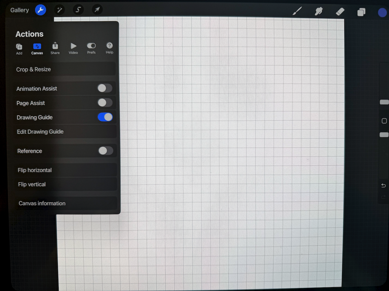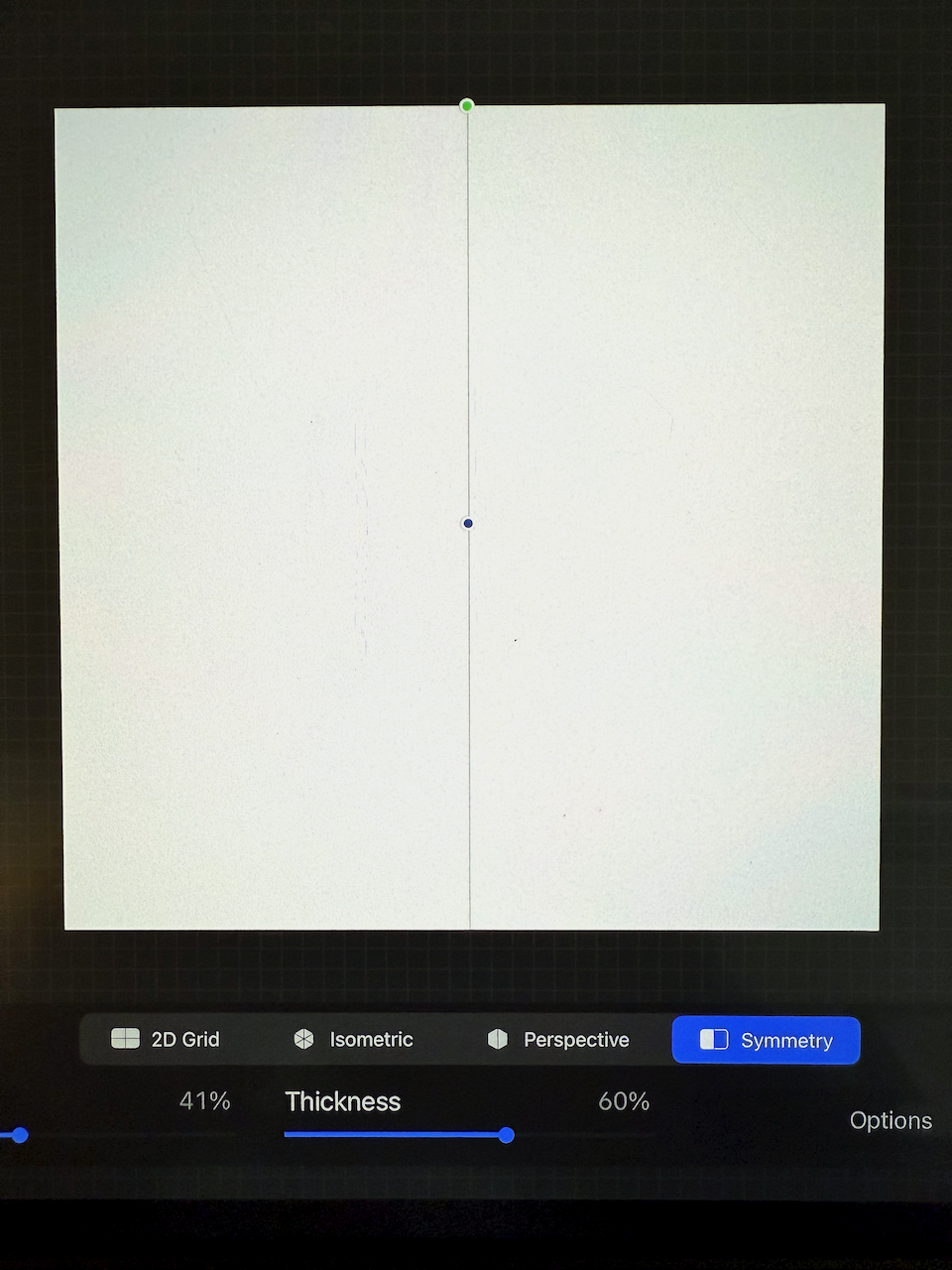 - Tap the wrench icon and tap ‘canvas’ at the top, then toggle ‘drawing guide’ on. There will now be a grid on your canvas and this is not exactly what we need, so next you’ll tap on ‘Edit Drawing Guide’. This brings up a little menu at the bottom of your screen, and you’ll tap on ‘symmetry’ then below that tap on ‘options’ and click ‘vertical’. Lastly, hit ‘done’ in the top right corner and your canvas is ready!